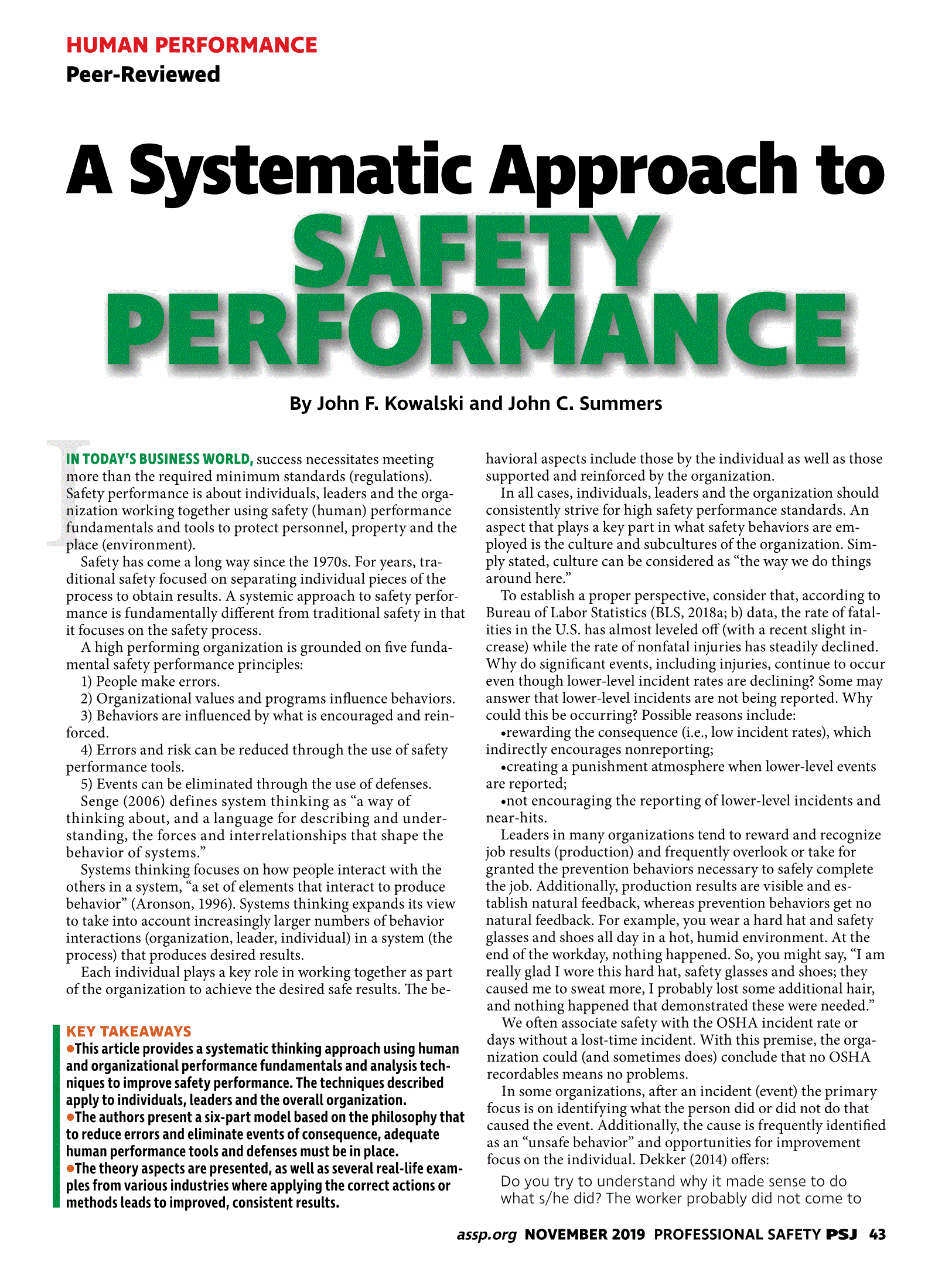 Safety Performance Training – Fundamentals and Tools